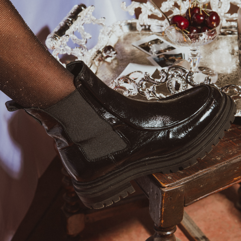 Boots Selena cuir vernis noir | Reqins